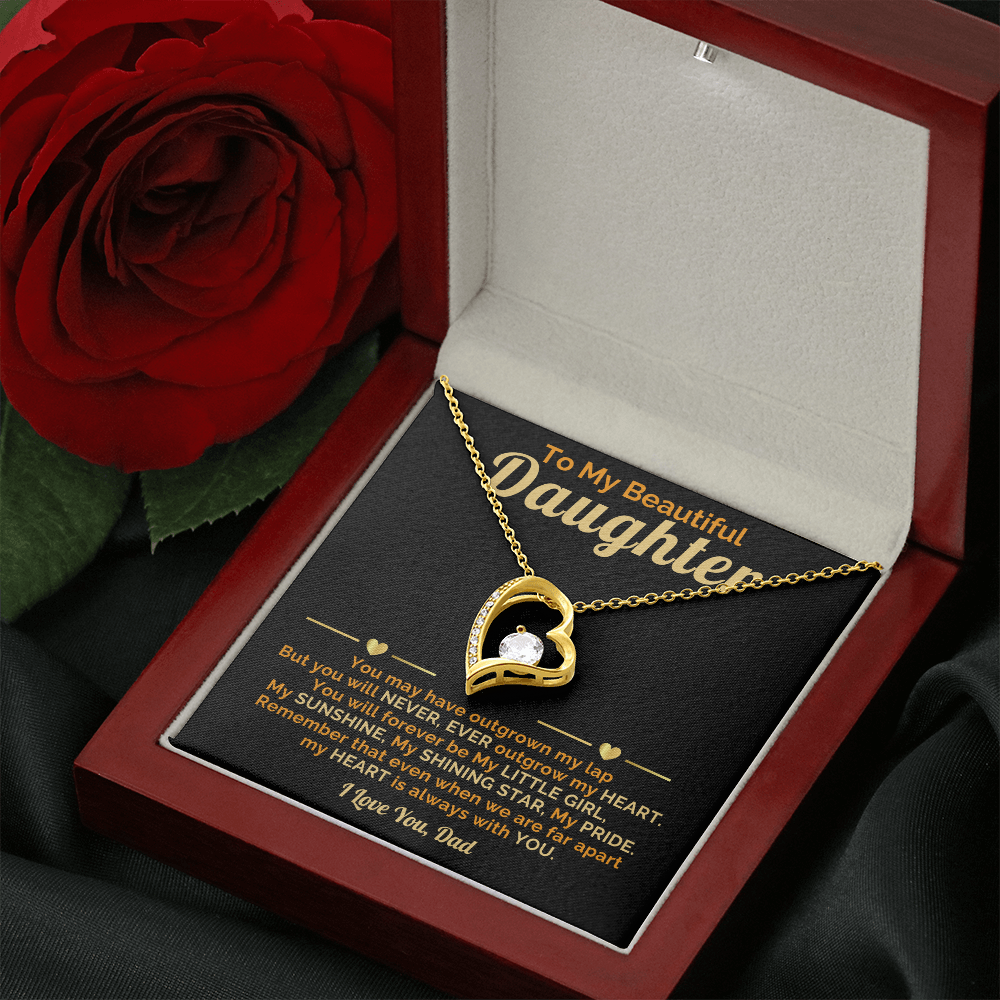Imagine your Daughter's smile when she opens this beautiful Forever Love Necklace, paired with a heartfelt message card. A gift that creates a memory to last a lifetime and a keepsake she’ll treasure forever.