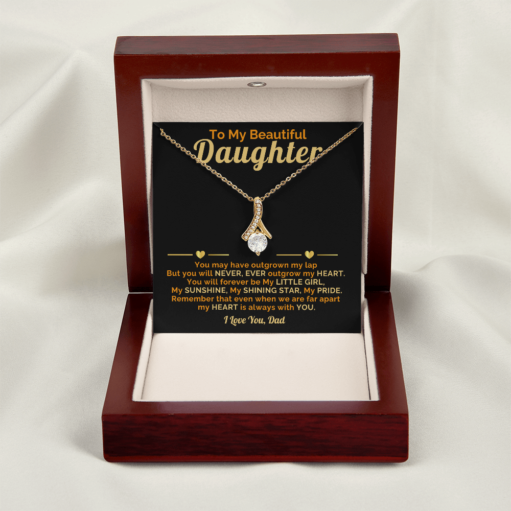 Imagine your Daughter's smile when she opens this Dazzling Alluring Beauty Necklace, paired with a heartfelt message card. A gift that creates a memory to last a lifetime and a keepsake she’ll treasure forever.